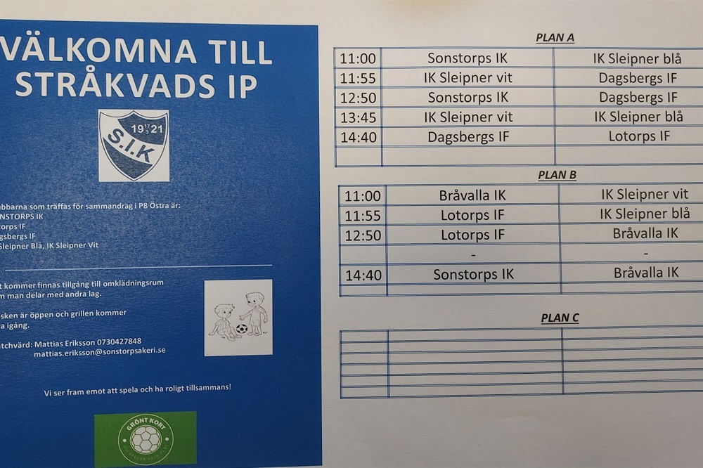 Hej här kommer spelschemat inför helgen .