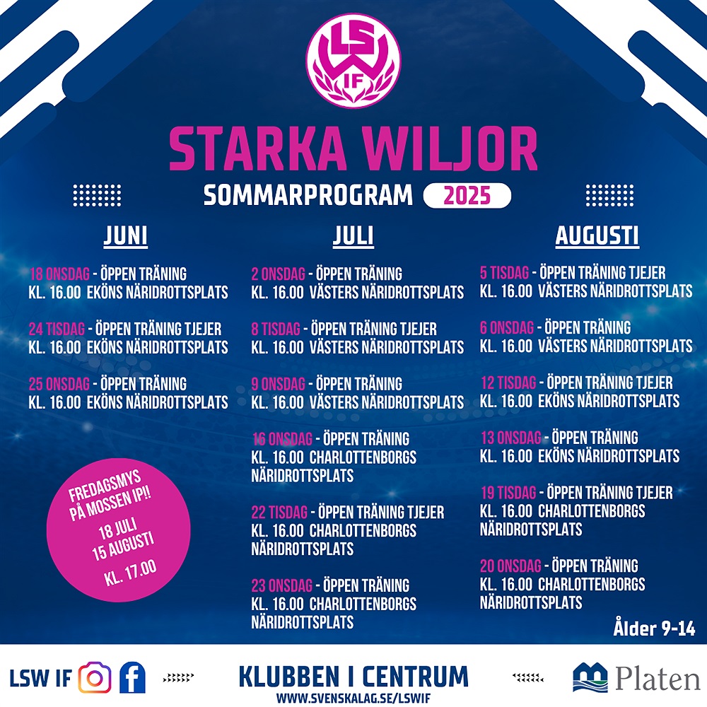 LSW IF vill rikta ett stort tack till Bostadsstiftelsen Platen för förtroendet och vi ser fram emot en lång samverkan där vi tillsammans kan berika många barn och ungdomars fritid!💙