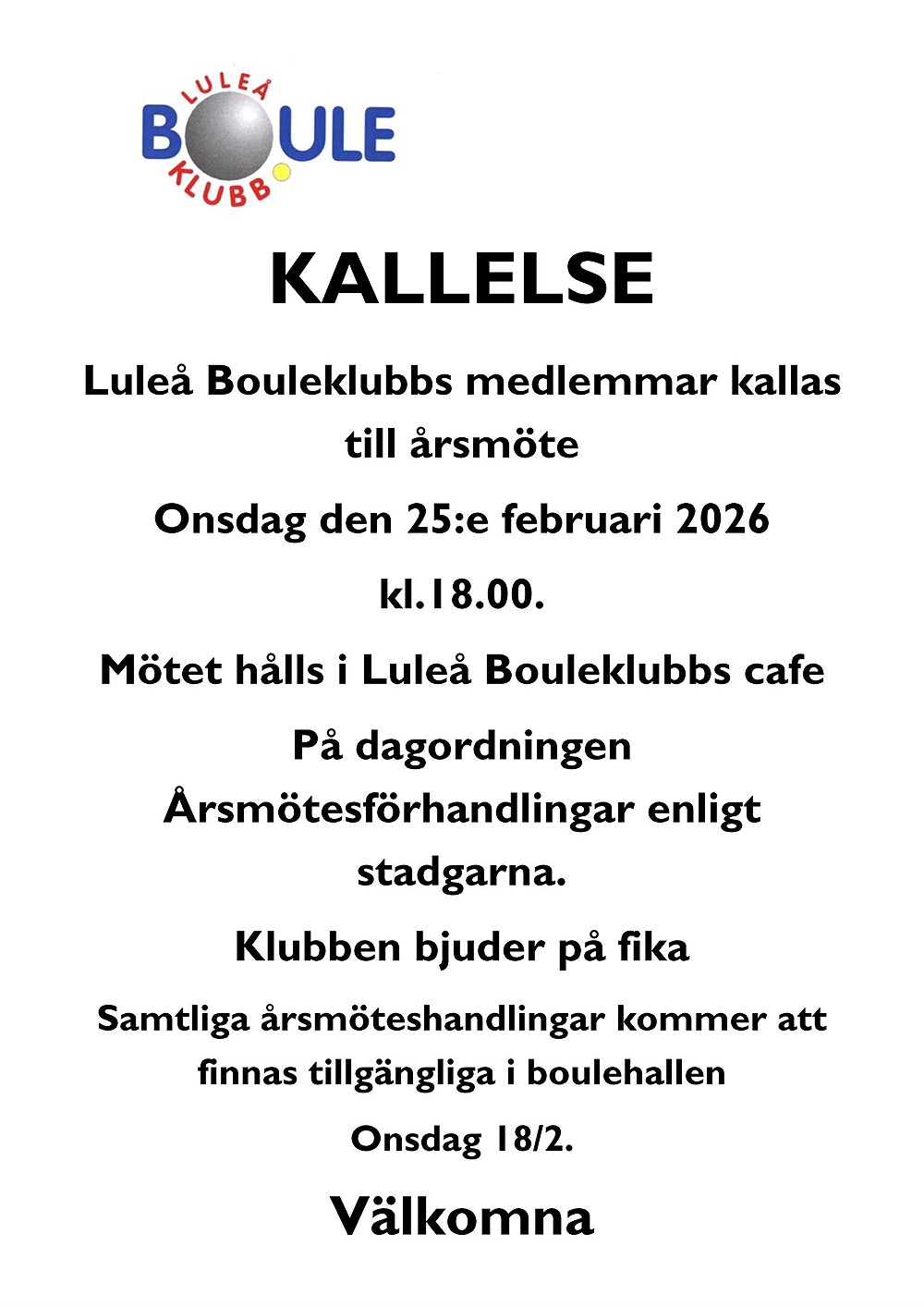 KALLELSE ÅRSMÖTE 2026