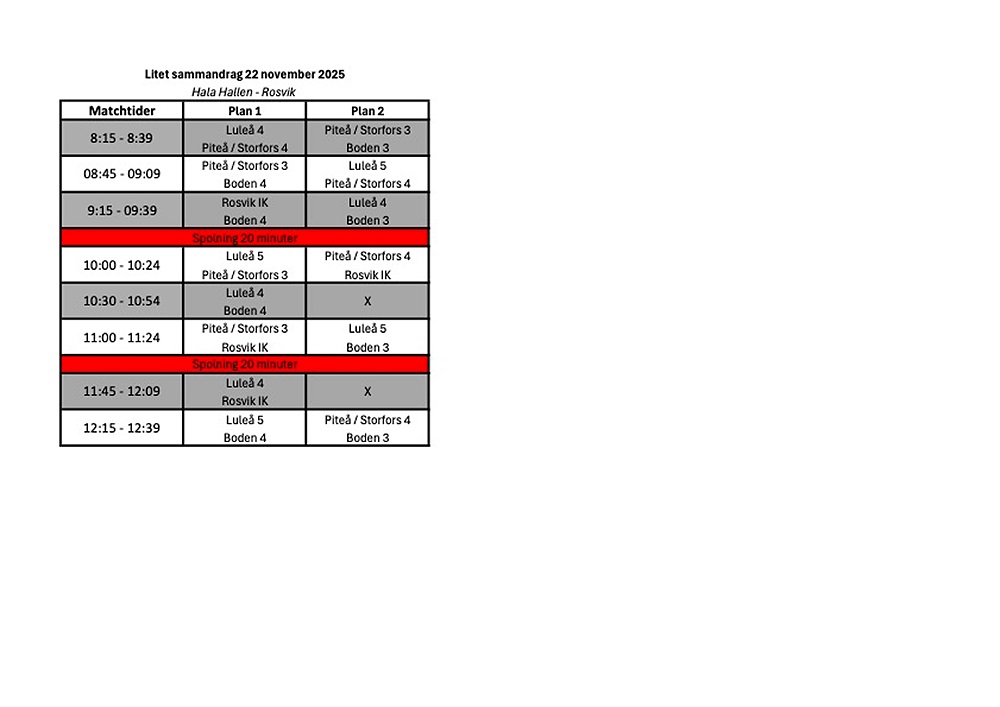 Lagen samlas 30 min innan lagets första match i omklädningsrum 1 i Ishallen.