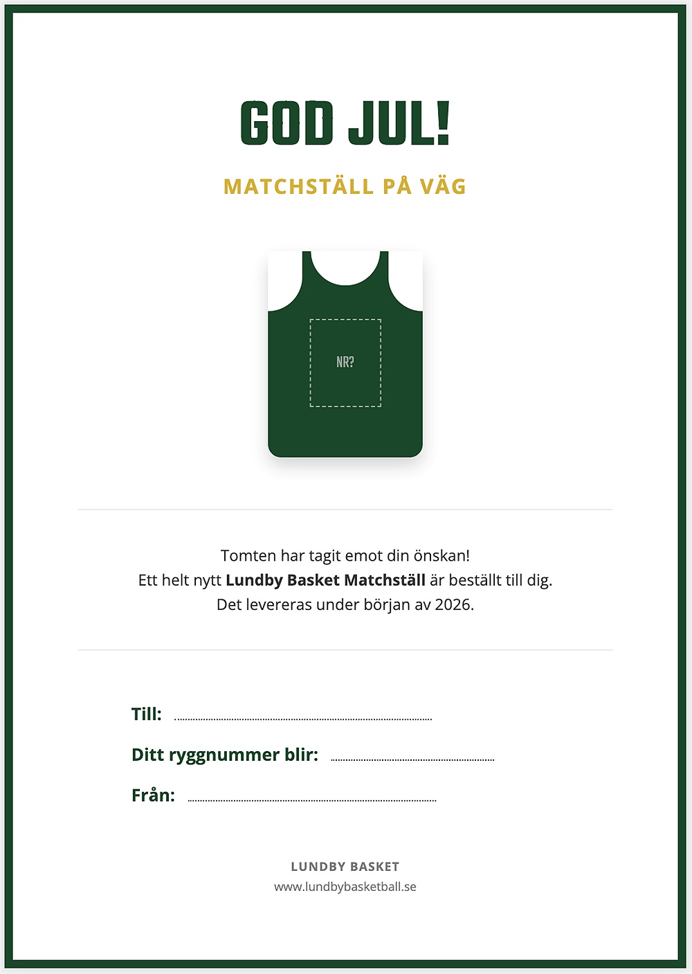 Här kommer inbjudan för att beställa personliga Lundby Basket matchställ, med egen namn och nummer. Dessa är exakt lika med de nya som vi spelar matcher med idag.