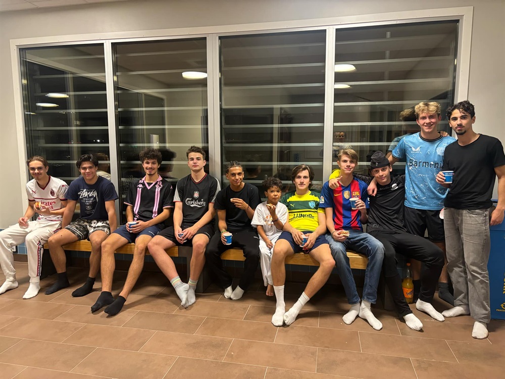 Kul med flera från olika lag som träffas umgås och spelar futsal tillsammans.
