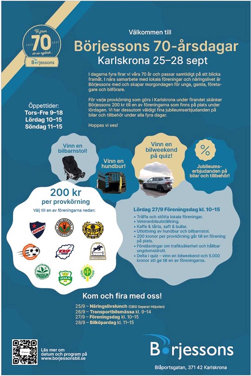 Vår samarbetspartner Börjessons fira 70 år kommande helg.