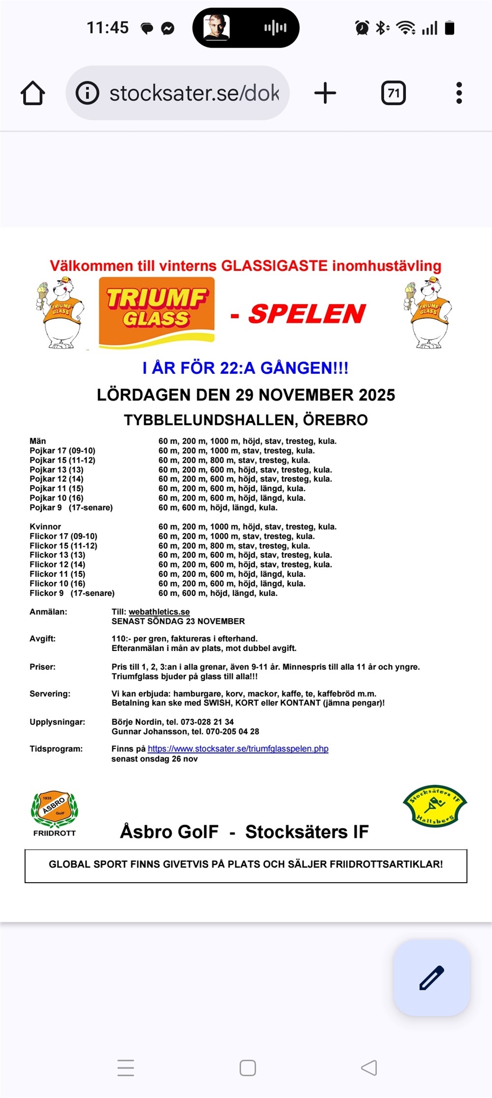 Hej! Säsongens sista utomhustävling i Tranås söndagen den 28 september.