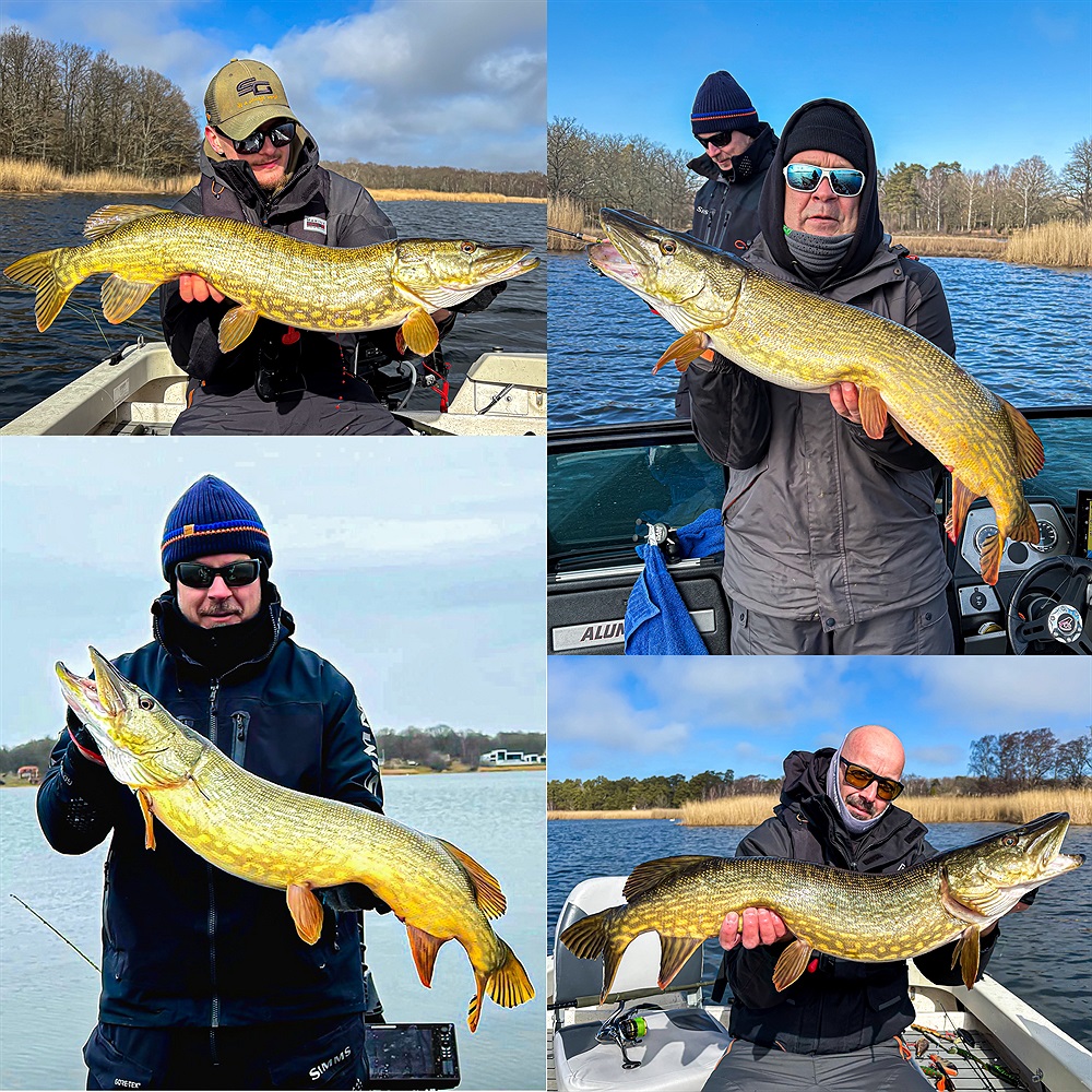Fisket var extremt segt och gäddorna var svårflörtade! Det krävdes både tålamod och en hel del nötande för att lura gäddorna till hugg. Trots detta landade vi totalt 25 gäddor, och även om antalet var lägre än hoppats var snittet riktigt fint – majoriteten av fiskarna mätte över 80 cm!