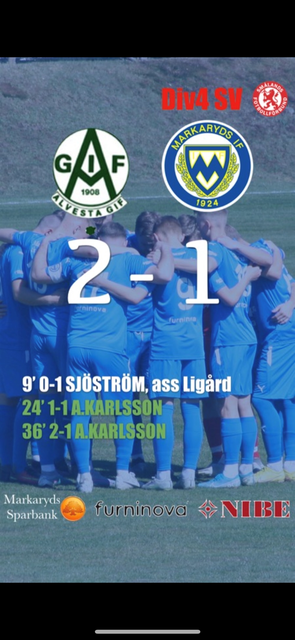 Vi börjar matchen bra och gör 1-0. Alvesta jobbar sig in i matchen och vi åker på mål bakåt där vi måste göra det bättre defensivt. Andra halvlek har vi mycket boll och dominerar halvleken utan att riktigt skapa avgörande lägen och ta med oss poängen hem. Kabbe får ett bra läge i slutet men målvaken har tur och får den på benskyddet och räddar. Alvesta har också två jätteläge men Wille räddar och ser till att vi inte släpper in fler mål. Det är en jämn serie och det gäller att vara noga i spelet och inte bjuda på lägen. Nu är det att ladda om och förbereda oss för match hemma mot Ljungby den 21 juni.