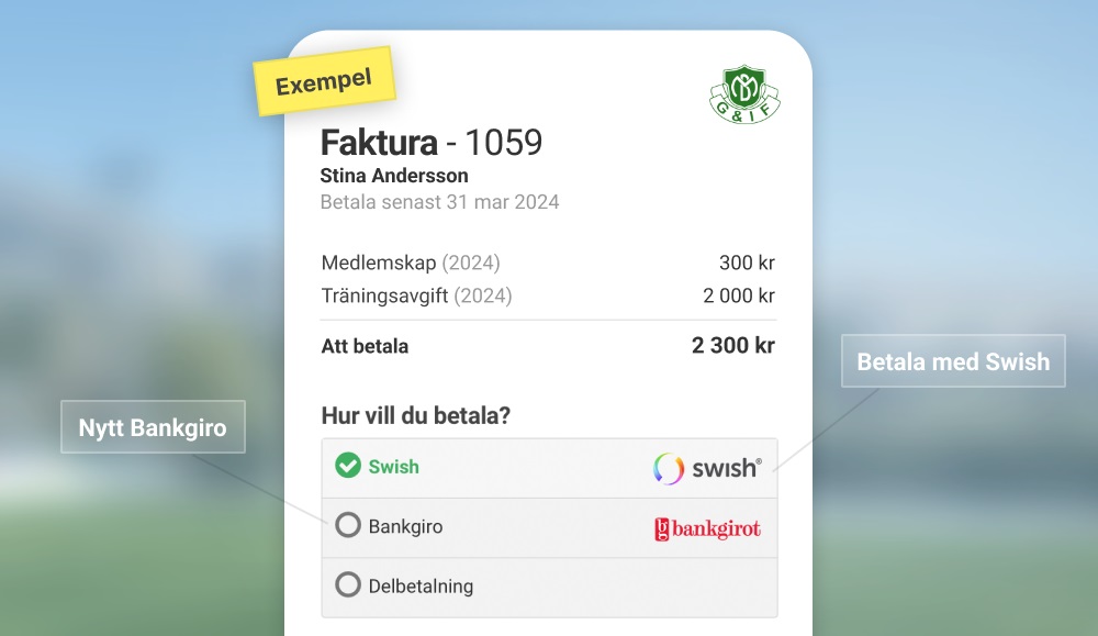 Vi har nämligen ett nytt Bankgiro på alla fakturor som skickas via Svenskalag. Om du öppnar din faktura på datorn eller i mobilen kan du även betala den med Swish.