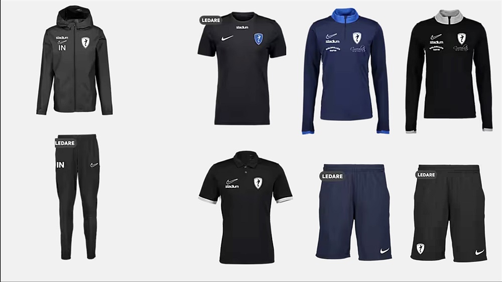 Om du behöver prova storlekar finns våra profilkläder på Stadium Tornby.