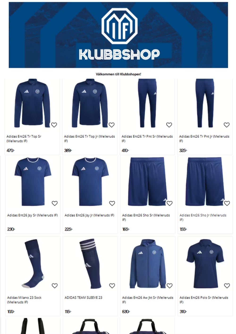 Melleruds IF:s klubbshop är nu uppdaterad med Adidas nya kollektion Entrada 26. Kollektionen erbjuder moderna och funktionella träningskläder samt praktiska väskor och tillbehör som passar både träning, match och vardag.