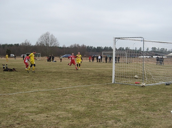 I första halvlek är Fårbo det spelförande laget och vi får koncentrera oss mestadels på försvars-/omställningsspel. Försvarsspelet fungerar bra men Fårbo är ändå nära att göra mål vid 3-4 tillfällen. Mikko i målet gör då ett antal fina ingripanden. I omställningsspelet gör vi det snäppet bättre och även vi skapar fina målchanser. Målet kommer dock inte på en omställning utan av att Warsame och Steffe utnyttjar ett strul i Fårbos försvar. Steffe avslutar distinkt från strax utanför straffpunkten. Utöver målet har Warsame och Steffe ett par fina läge där den senare bla hade en boll ribba-mållinje-ut. Halvleken spelmässigt till Fårbo, chansmässigt oavgjort.