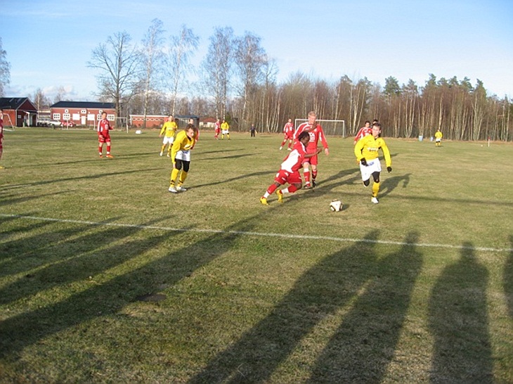 I slutet av halvleken fick Warsame kliva av efter en rejäl smäll på foten. Vi hoppas att den är ok till nästa veckas premiär. Samma gäller för Nicke som efter uppvärmningen beslutade att "säkerhets-vila" sin vad. Glädjande var annars Sammes årsdebut som han genomförde på mittfältet.