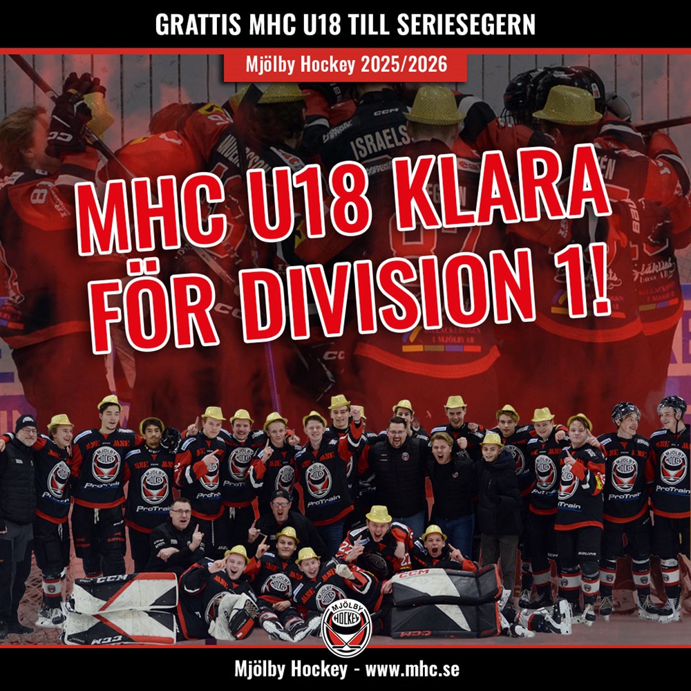 Hela Mjölby Hockey och alla runt omkring föreningen skickar härmed ett stort GRATTIS till U18-laget, som under söndagen säkrade seriesegern i Division 2 – vilket betyder att MHC U18 framöver spelar i Division 1!