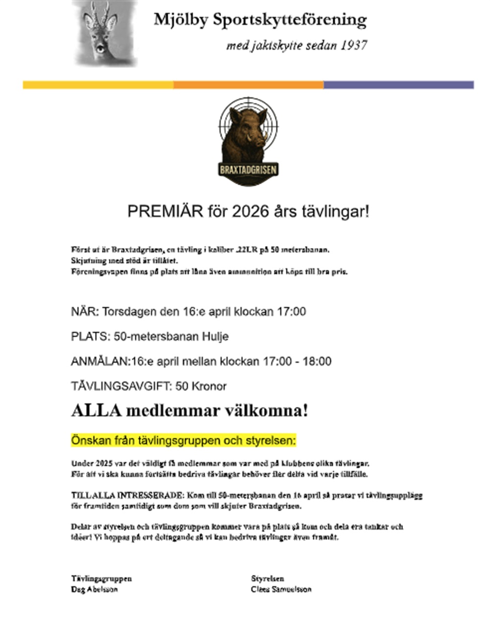 Känner du att du har ideér hur vi ska utveckla tävlandet för att få fler intresserade eller om du vill komma och ge stöd så är du också välkommen. Klicka här för info.
