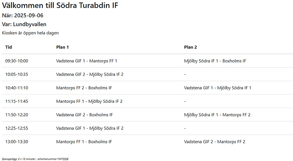 Söndagen 6/9 är det vår tur att stå som värd för ett sammandrag, spelschemat hittar ni ovan.