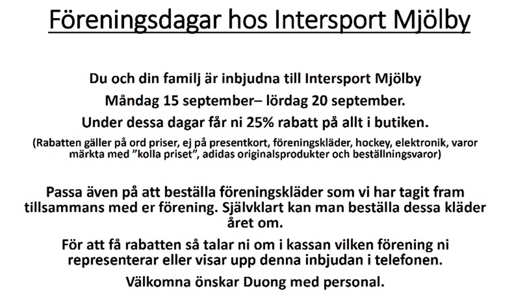 FÖRENINGSDAGAR PÅ INTERSPORT, MJÖLBY