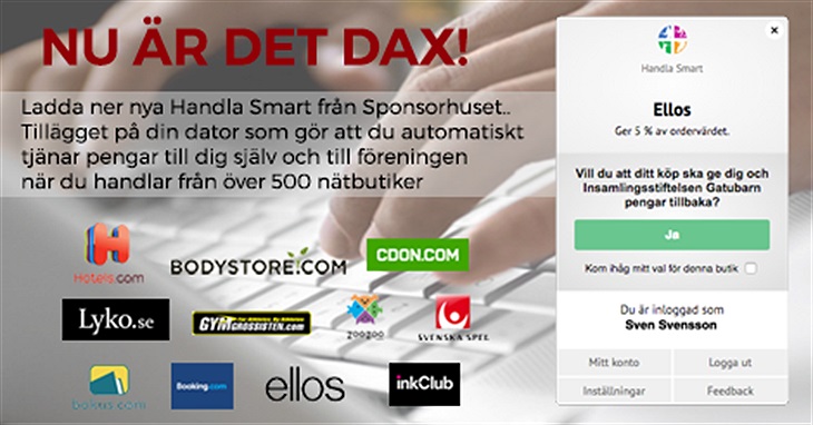 Nu har äntligen Sponsorhuset släppt den nya versionen av Handla Smart. Tillägget för Google Chrome som gör att både du och Moholms SK automatiskt får pengar tillbaka när du handlar från över 500 kända nätbutiker. Klicka på denna länk när du sitter vid datorn och testa hur smidigt det funkar: