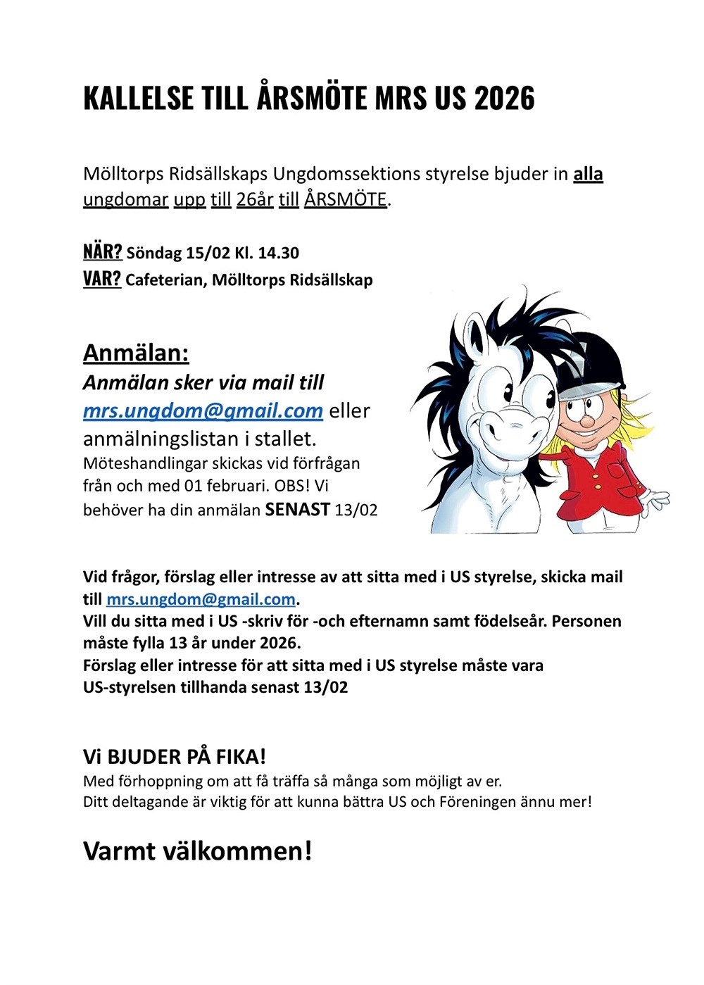 Notera att du kan medverka på årsmötet utan att vilja bli invald i Styrelsen.