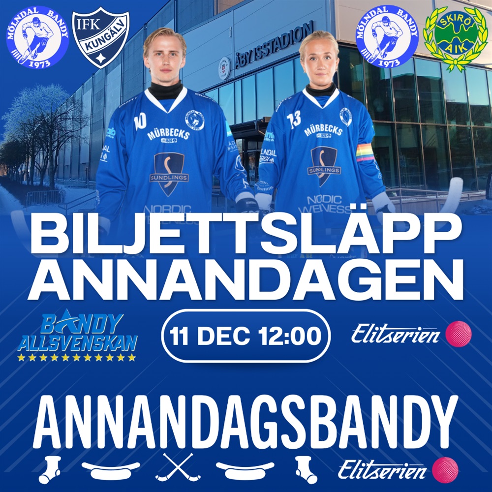 Kl 12:00 imorgon (11 december) släpps biljetterna till Annandagens matcher på Åby Isstadion. Herrlaget tar emot IFK Kungälv (13:00), följt av Damlagets match mot Skirö AIK (16:30).