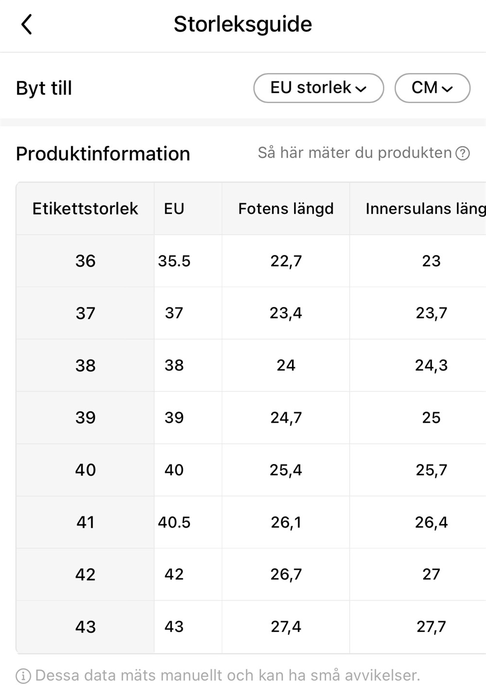 STORLEKSGUIDE SKOR