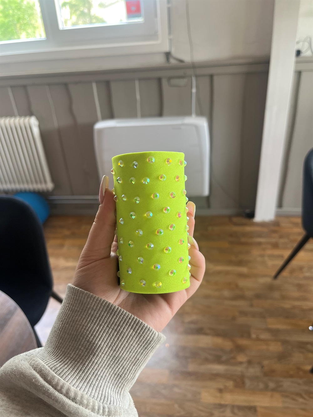 På struten ska pärlorna sitta ganska tätt men slumpvis.