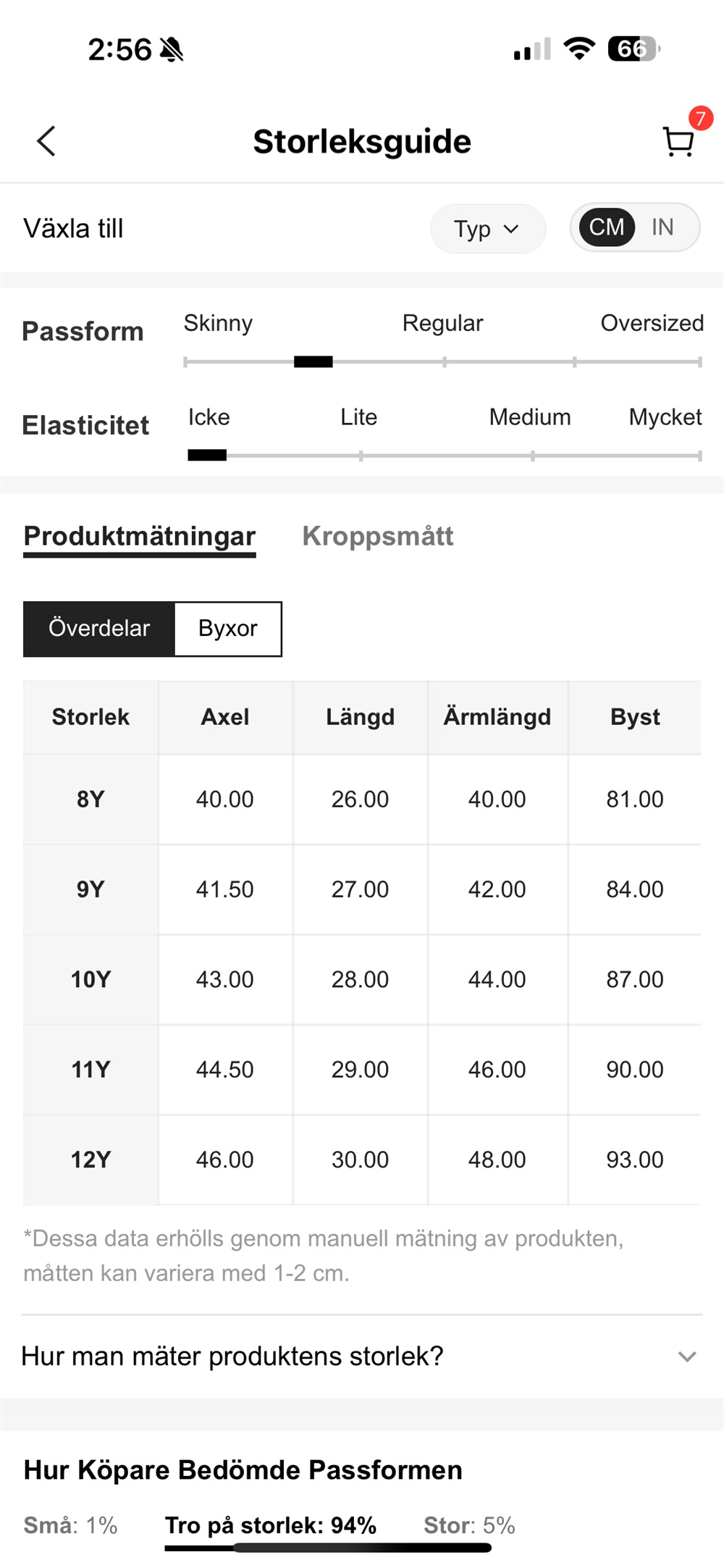 Storleksguide ÖVERDEL