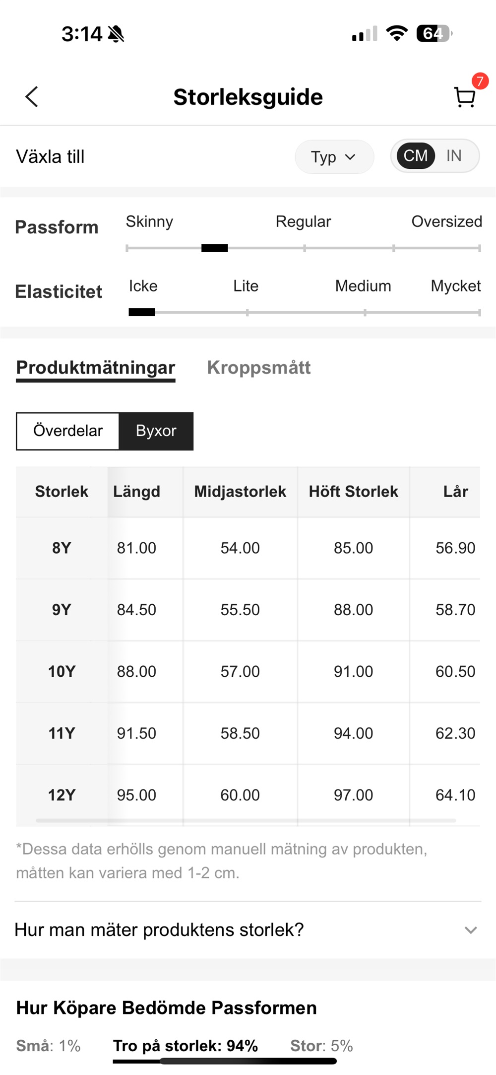 Storleksguide UNDERDEL