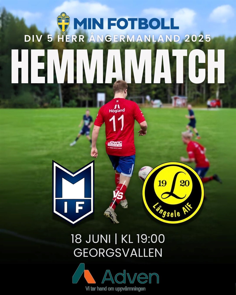 HEMMAMATCH PÅ GEORGSVALLEN På onsdag 18 juni kl. 19.00 tar vi emot Långsele AIF hemma på Georgsvallen.