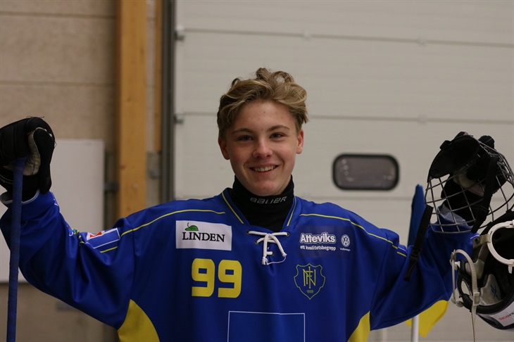 Linus Jönsson, jättetalangen i NIF som fyller 17 i år, gjorde två mål i kväll men var säkert ändå inte glad som på den här bilden efter en A-lagsmatch tidigare denna säsong. Linus får nu satsa på P 18-laget, som också är i SM-kvartsfinal mot Västerås.