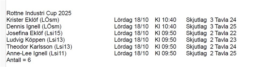 6 st av våra skyttar startar. Nu hoppas vi på en riktigt härlig och trevlig tävling med bra resultat!