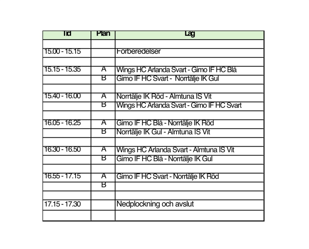 Arbetsschema – Hemmapoolspel söndag 7 december