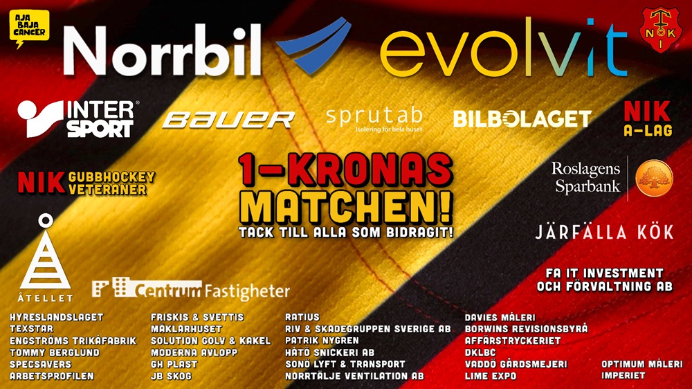 Ett särskilt tack till våra sponsorer som möjliggjorde fri entré för publiken, som ställde ut och visade upp sina verksamheter och som – genom sitt engagemang – fortsätter att stötta Norrtälje IK, men också välgörenhet i samband med denna match 💛