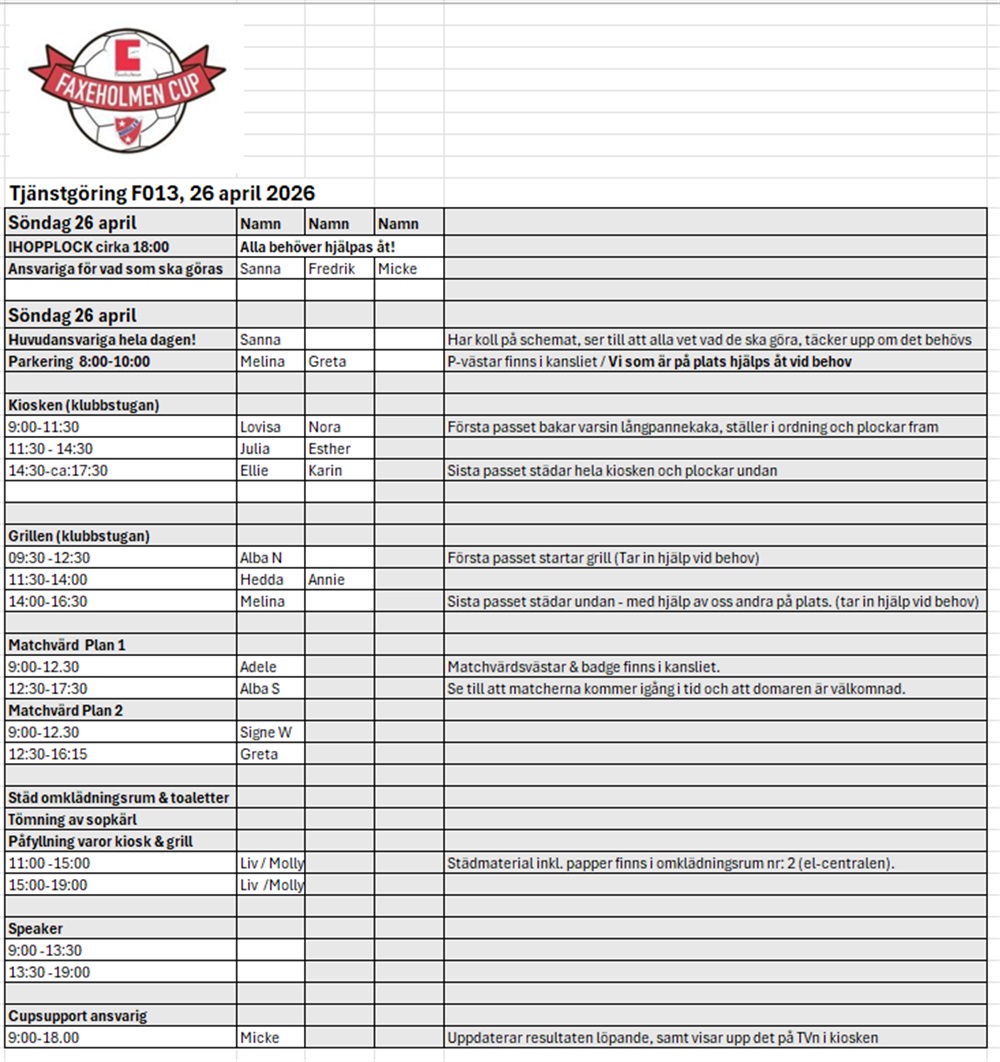 Hej! Det står både lördag den 25/4 och söndag den 26/4 så vart lite fundersam vilken dag vi ska stå i kiosken?
