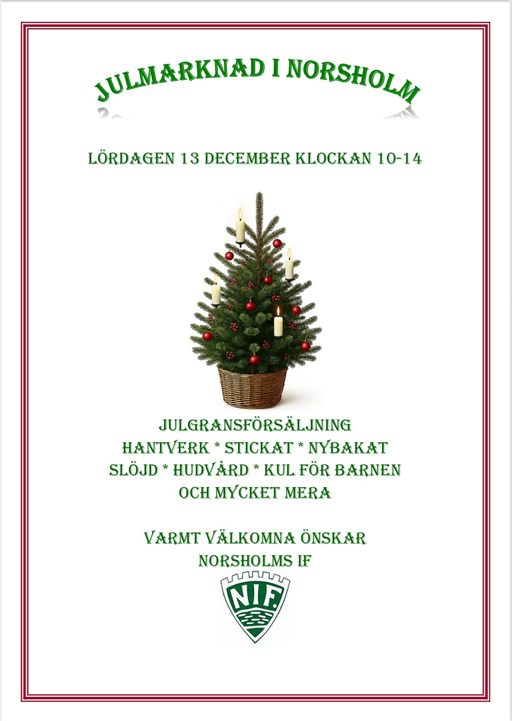 Lördag den 13/12 arrangerar Norsholms IF en Julmarknad vid Fritidsstugan och vi hoppas att Ni kommer och besöker oss då.