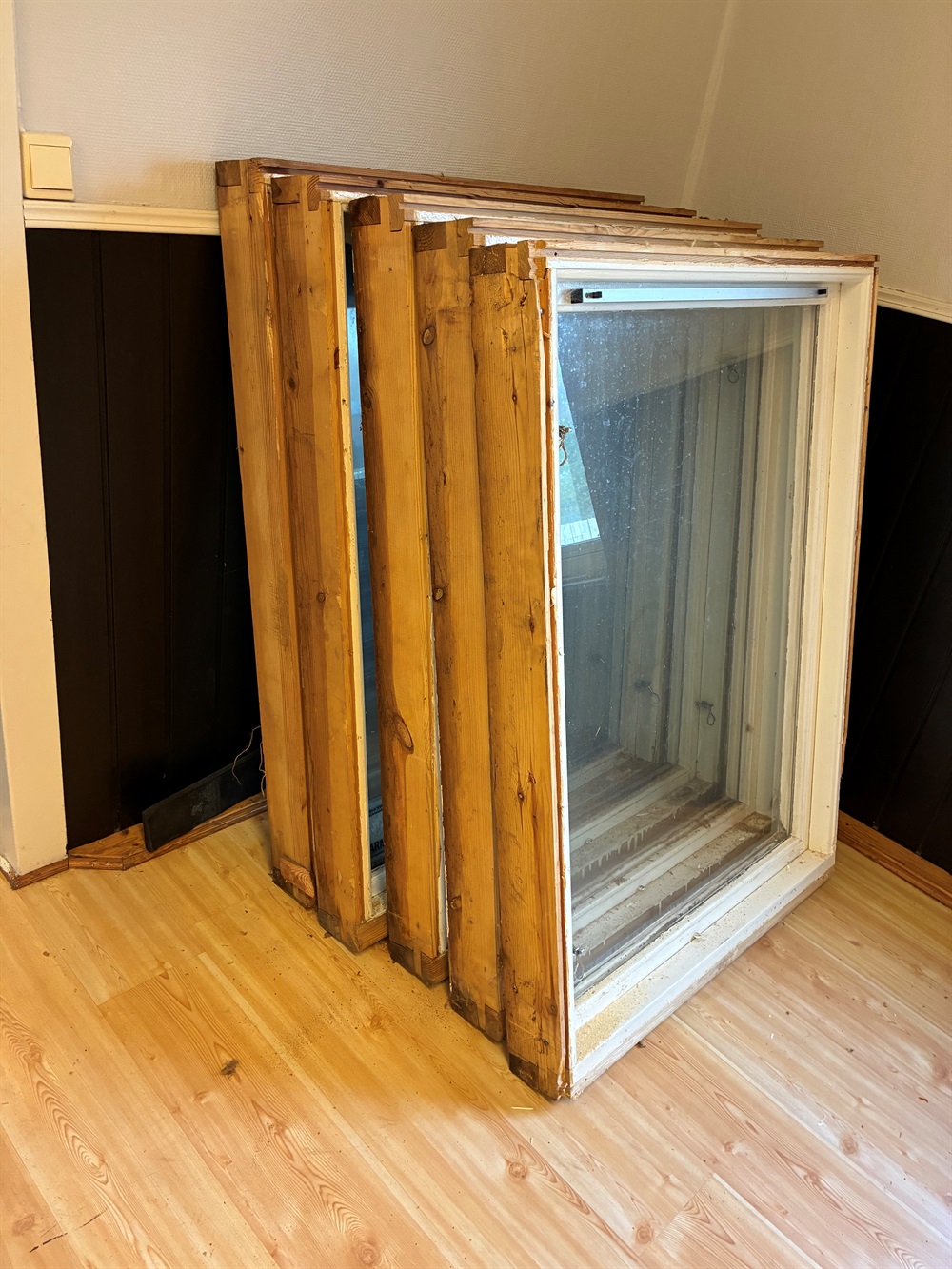 Det är dom gamla fönstren i fritidsstugan som vi håller på att byta ut