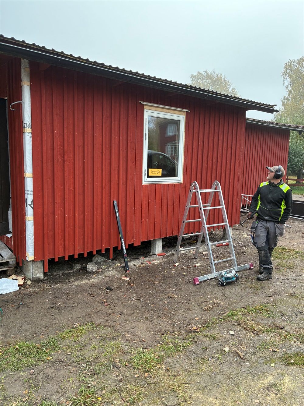 På Fredag räknar vår snickare att Panelen o fönstren är klara och etapp 1 är klar .