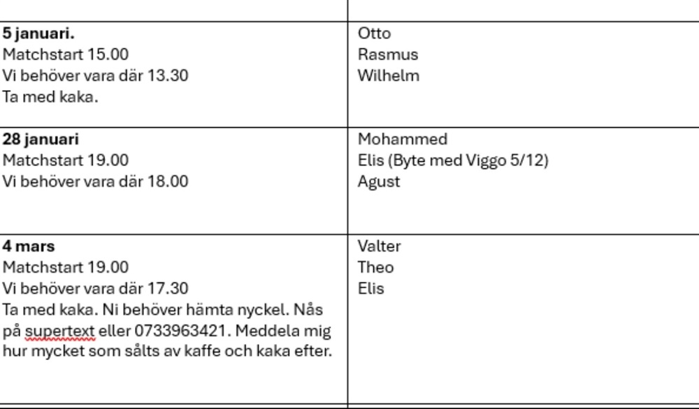 De uppdrag som tillfaller oss är att bemanna sekretariat, kiosk samt att erbjuda lunchservering. Det finns önskemål från föreningen att anlita Stora Hotellet till detta. Vi behöver kontakta dem för prisuppgift samt kontakta gästande lag om de önskar lunch, detta kan Robert & Robert kolla.