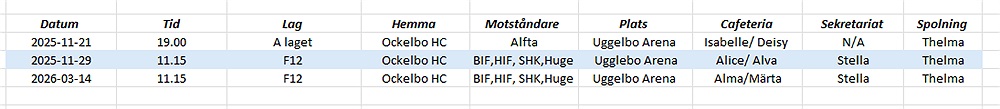 På våra matcher ska man vara på plats ca 1 timme innan och på A lags matcher ca 2 timmar innan, instruktioner sitter på kyl och frys i cafeterian.