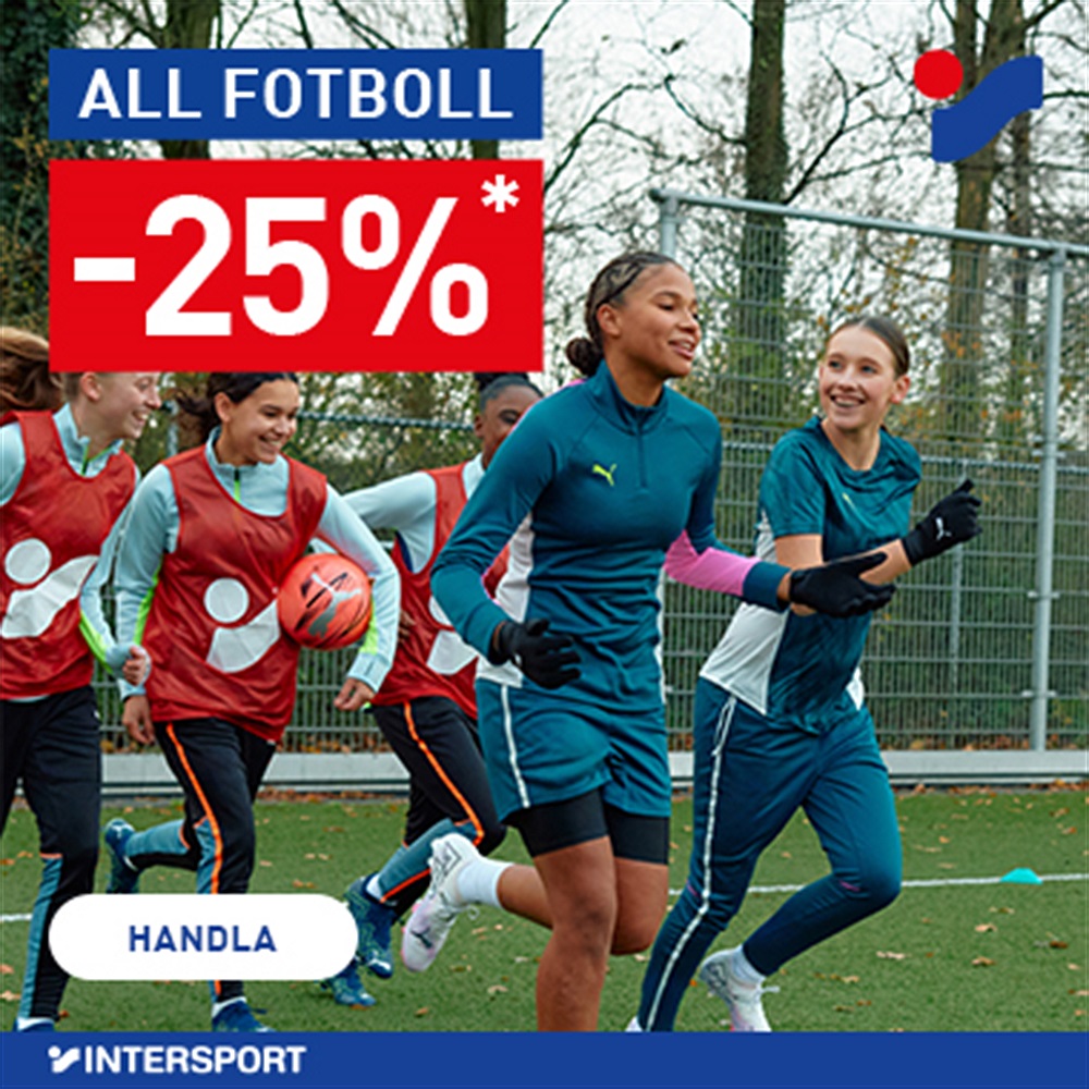 Den 26/2–17/3 har de 25%* rabatt på fotbolls sortimentet mot uppvisande av streckkoden i butik eller med onlinekoden FOTBOLL25 på intersport.se.