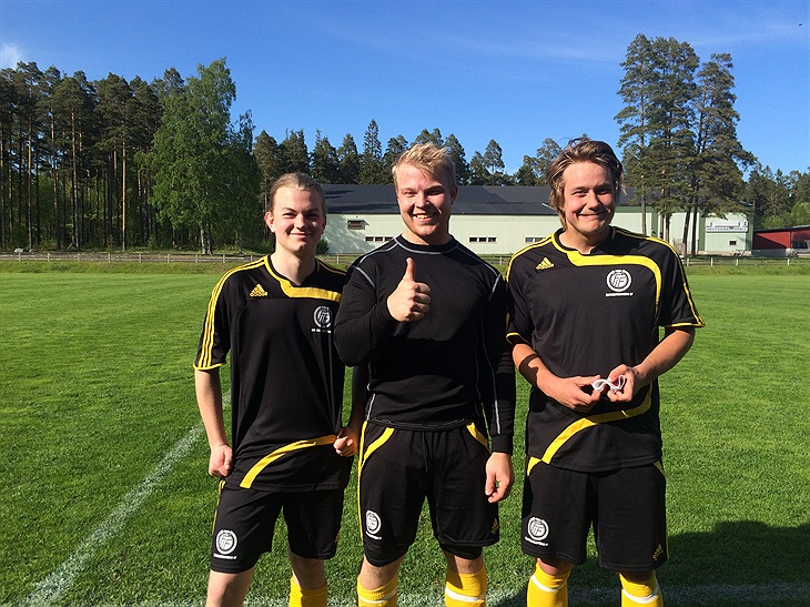 Målskyttarna Gustav Ericsson, Fredrik Larsson och Marcus Lundell