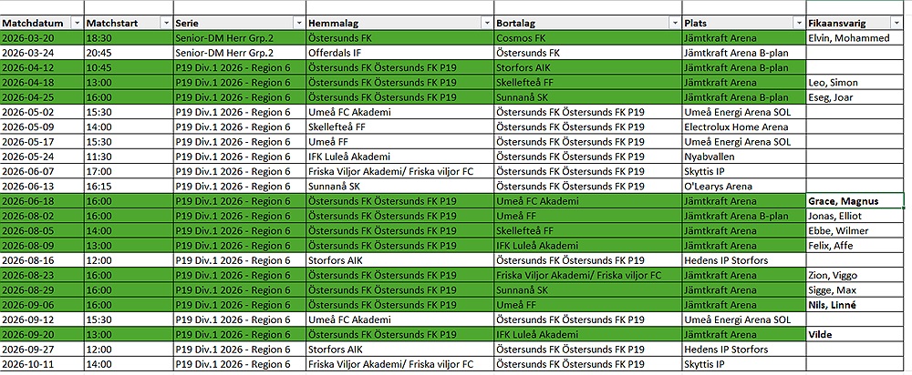 Här kommer en uppdaterad fikalista inför säsongens matcher. Förändringar är markerade med fet stil. Om ni har blivit placerade på ett datum ni inte kan är ni själva ansvariga för att byta inom föräldragruppen ÖFK P19.