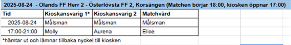 Nu är det dags att bemanna kiosk och matchvärd vid kommande herrmatch.