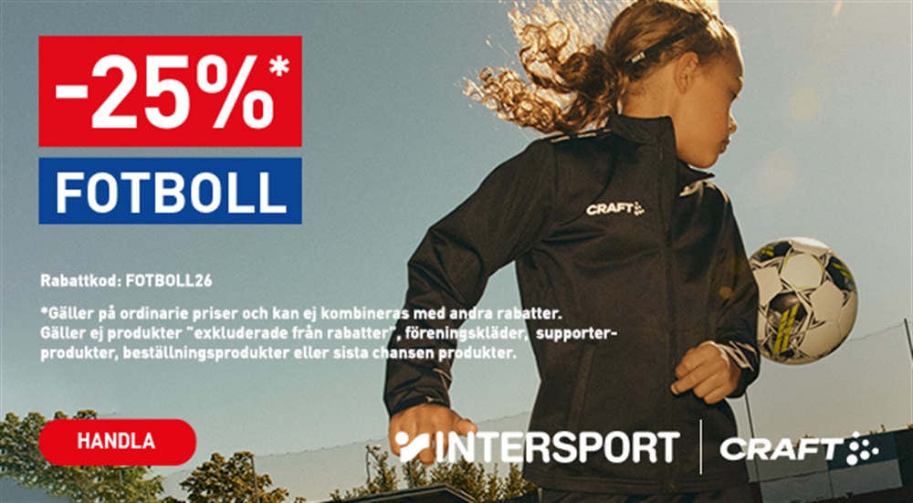 Fotbollssäsongen är här! T.o.m. den 20 april får du 25 % rabatt på all fotbollsutrustning hos Intersport, perfekt för att fylla på med det du behöver under säsongen.