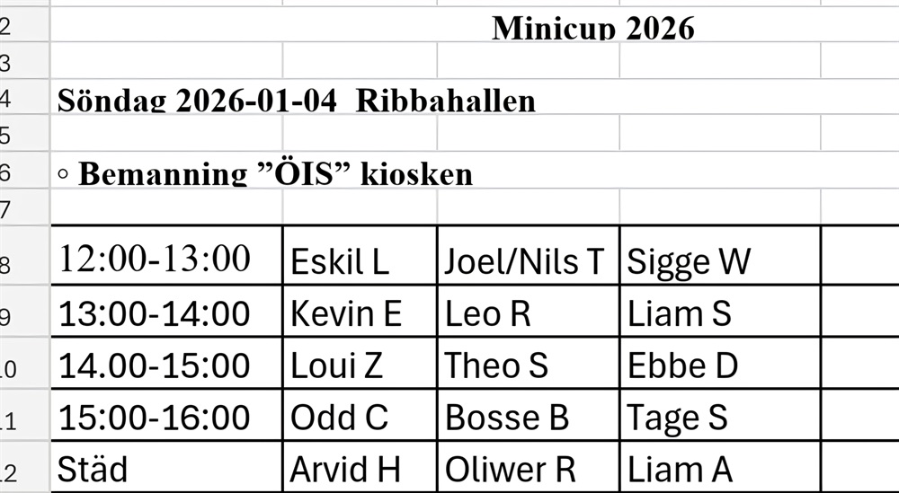 Vi har delat ut lite tider för kiosken, skulle man inte kunna den tiden man är uppsatt på så är det upp till er föräldrar att byta med varandra! Vid byten så meddela Markus eller under kommentarer.