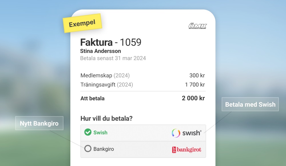 Vi har nämligen ett nytt Bankgiro på alla fakturor som skickas via Svenskalag. Om du öppnar din faktura på datorn eller i mobilen kan du även betala den med Swish.