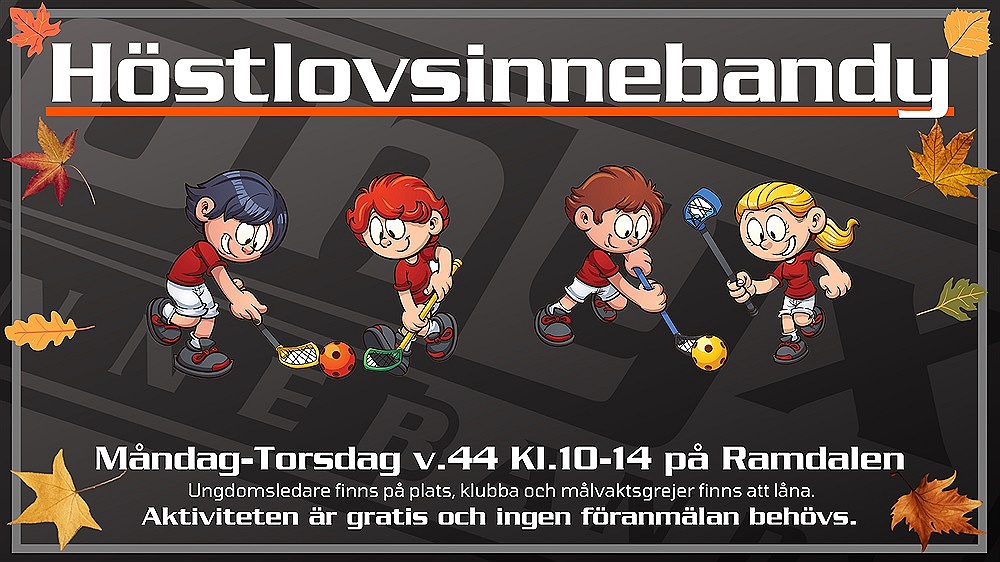 På höstlovet kommer vi befinna oss på Ramdalens sportcenter mellan kl. 10.00 - 14.00. Kom och spela innebandy med oss!
