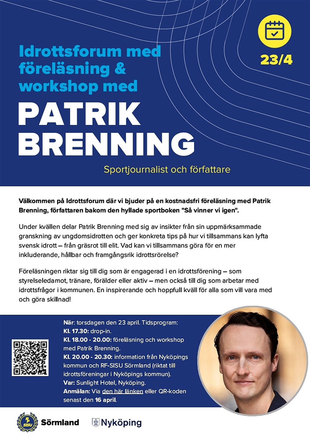 Välkommen på Idrottsforum där vi bjuder på en kostnadsfri föreläsning med Patrik Brenning, författaren bakom den hyllade sportboken "Så vinner vi igen".