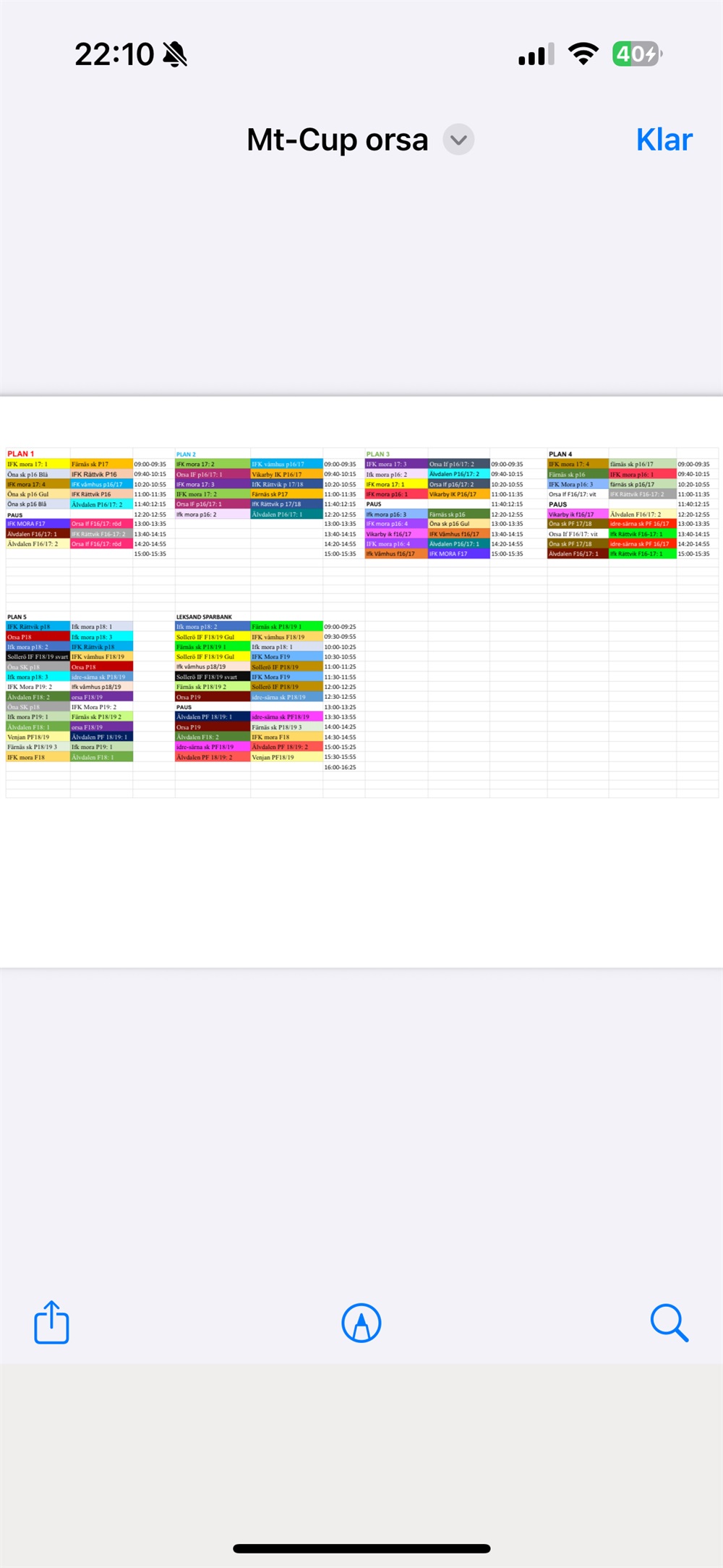 Fotbollsskor, benskydd och vattenflaska medtages. Spelschemat bifogas.