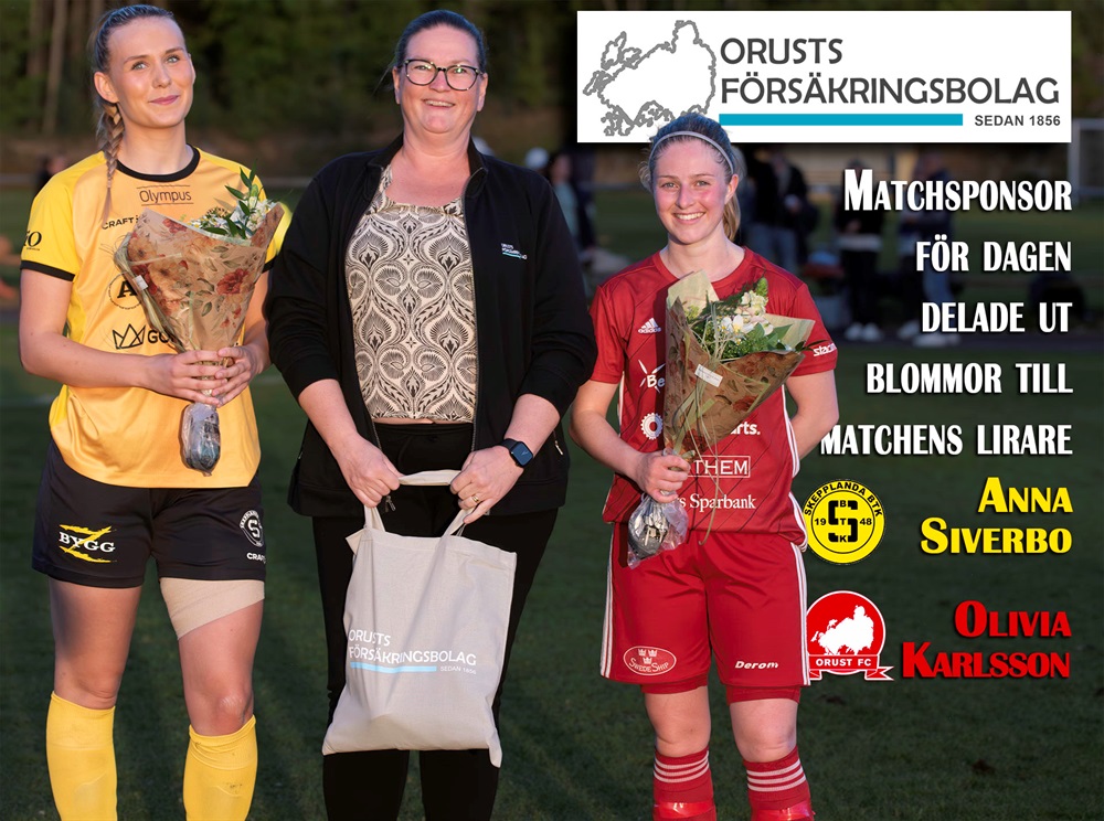 Dagens matchsponsor var ORUSTS FÖRSÄKRINGSBOLAG. Som vanligt tog de ut matchens lirare. I Skepplanda blev det Anna Siverbo och till oss fick Olivia det välförtjänt.