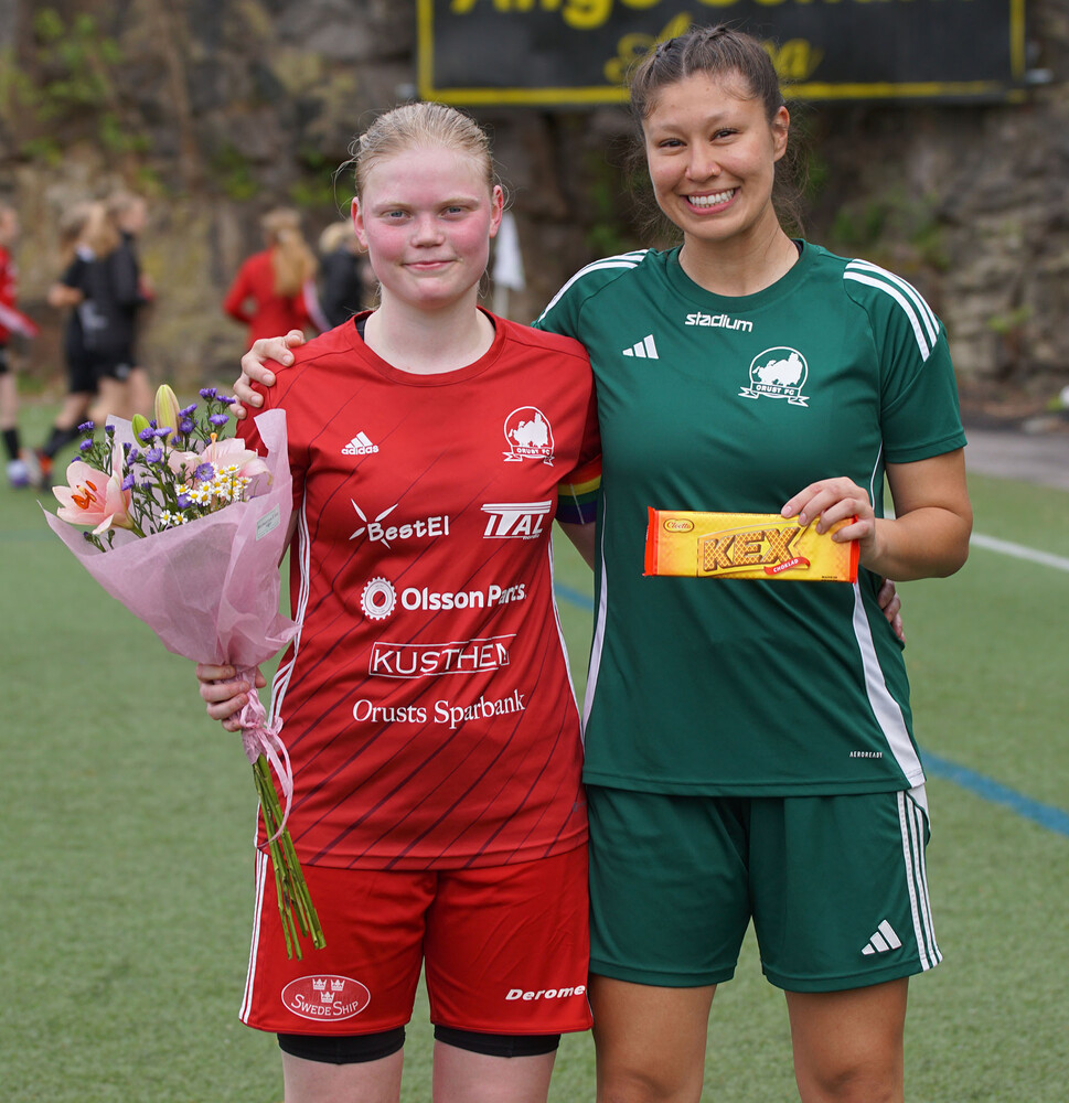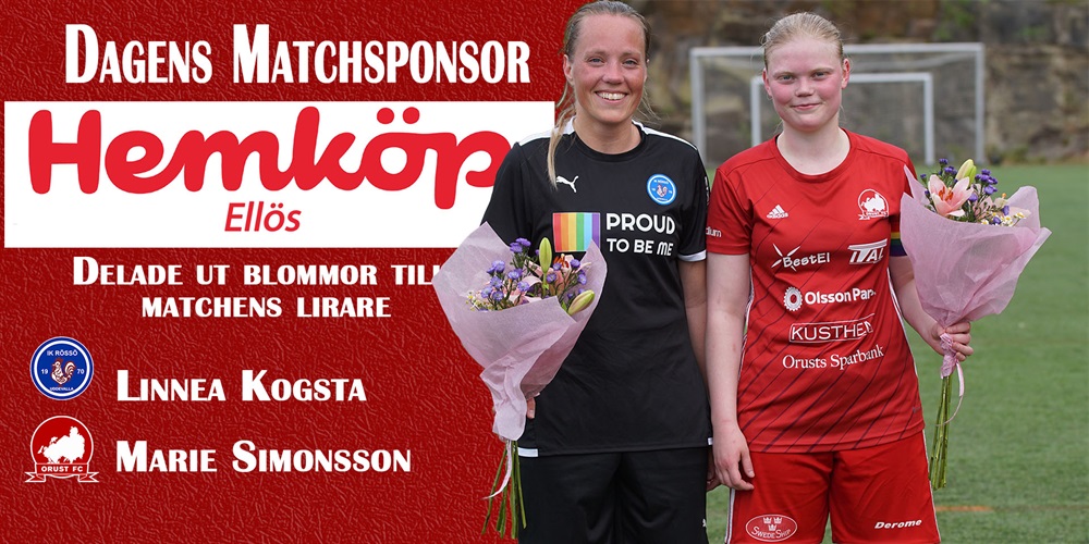 Hemköp Ellös var dagens matchsponsor och delade ut blommor till matchens lirare. Linnea Kogsta fick det i IK Rössö och Marie Simonsson hos oss.
