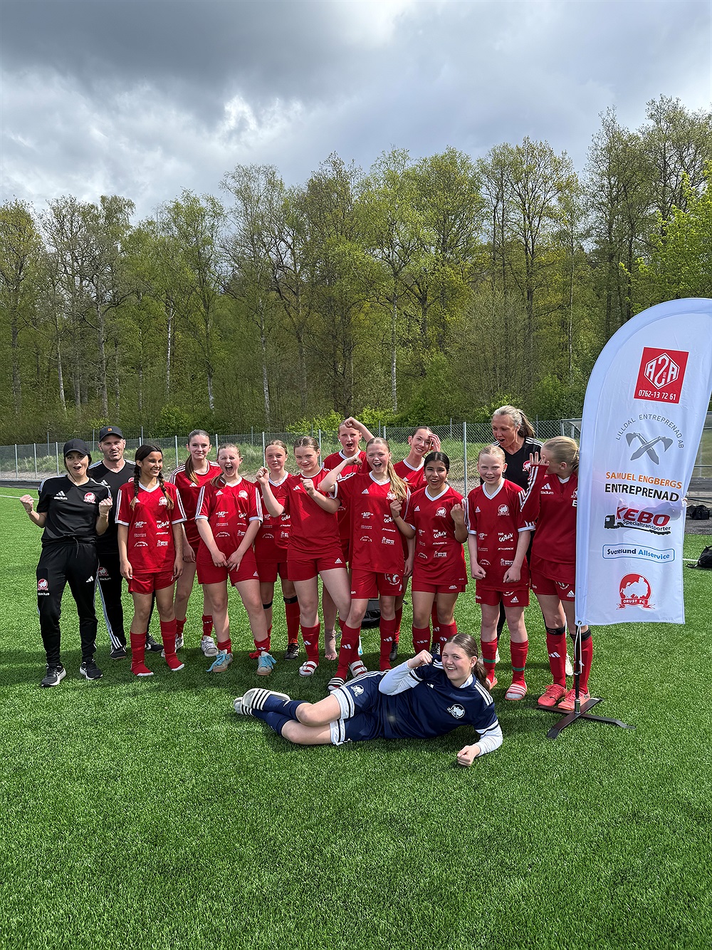 Våra tjejer får till ett bra snack, trotsar värmen med fina löpningar och pressar hemmalaget för bollövertag.